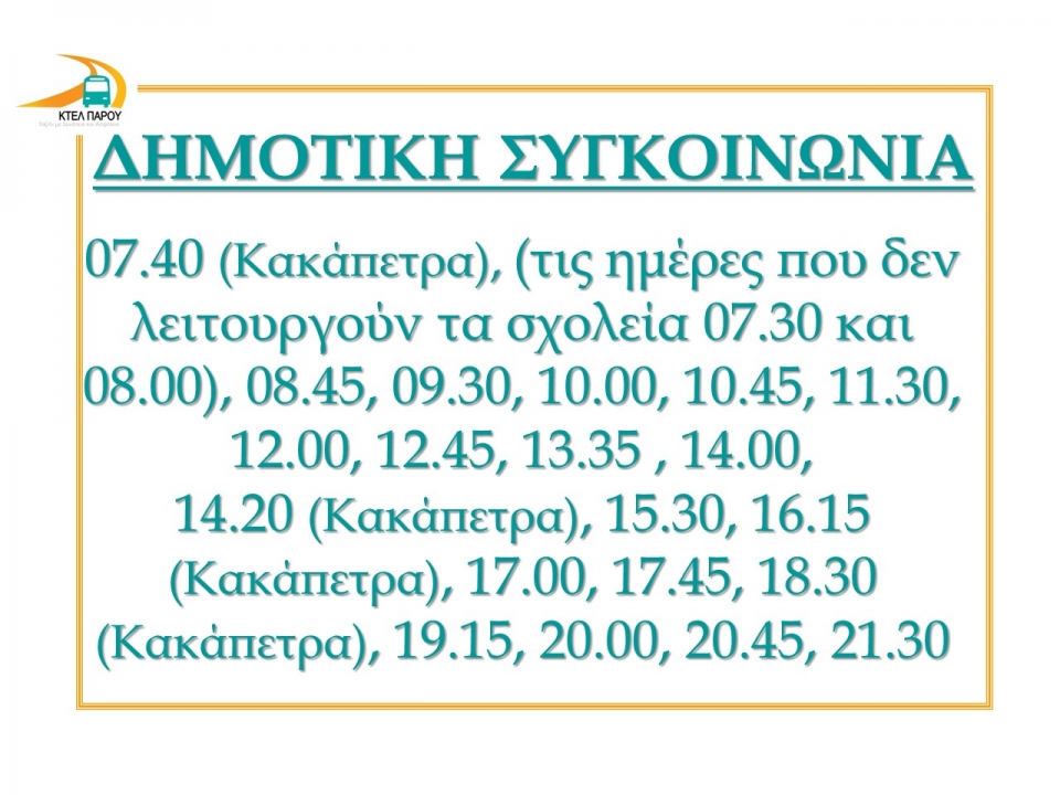 Για να δείτε,να κατεβάσετε ή να τυπώσετε τα δρομολόγια από 01/12/25 έως 23/12/25, παρακαλώ πατήστε εδώ: bus timetable.pdf (148.5KB)